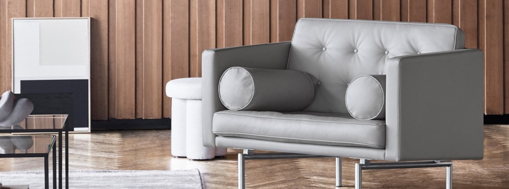 Basada en el clásico diseño de Bruno Mathsson, la butaca Karin ofrece un asiento elegante con un marco cromado fino y un cojín con costuras profundas.