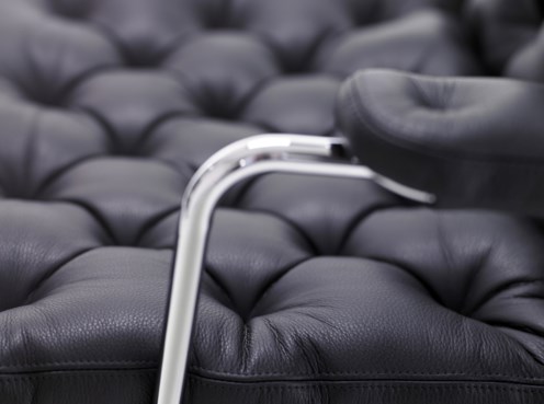 Basada en el clásico diseño de Bruno Mathsson, la butaca Karin ofrece un asiento elegante con un marco cromado fino y un cojín con costuras profundas.