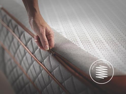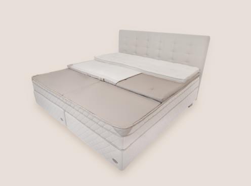 La capa superior de la cama DUX con sistema Pascal se puede desenganchar para revelar seis módulos de muelles intercambiables; tres para cada lado. Puede organizar los módulos en función del tamaño, la forma y las necesidades del cuerpo.