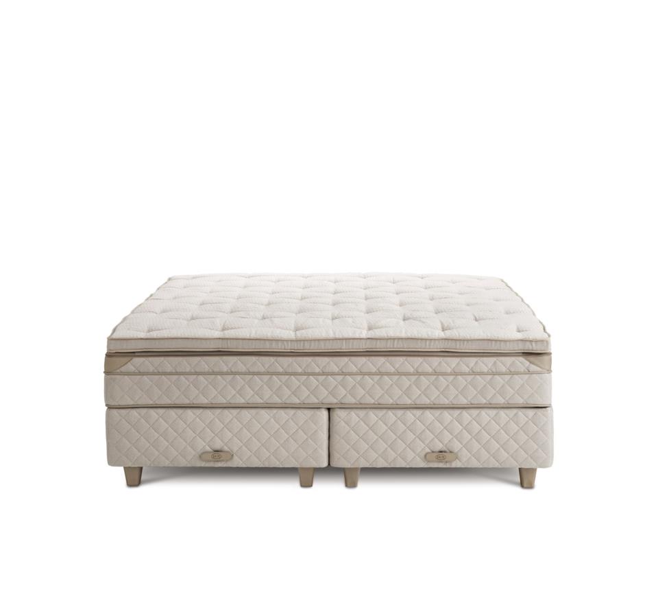 Comodidad legendaria y una cama DUX de bastidor alto con una construcción dinámica de dos capas de muelles.
