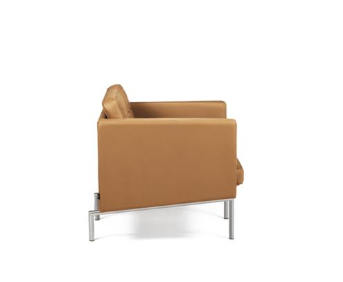 Basada en el clásico diseño de Bruno Mathsson, la butaca Karin ofrece un asiento elegante con un marco cromado fino y un cojín con costuras profundas.