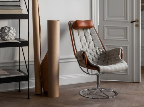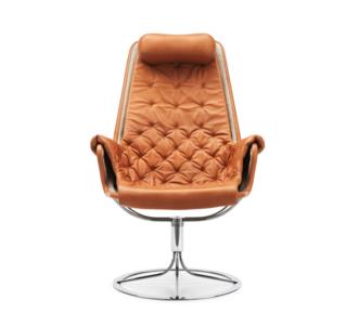 Butaca emblemática diseñada por Bruno Mathsson. La butaca Jetson refleja tanto su obsesión por el confort como el concepto de diseño moderno basado en el estilo sueco clásico. Cuenta con un asiento curvado con respaldo alto de diseño ergonómico y cojín para la cabeza. Base giratoria cromada con un exclusivo mecanismo de autorretorno.