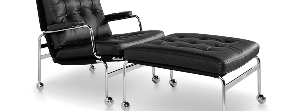 Este clásico y elegante sillón diseñado por Bruno Mathsson en 1969 fue la primera pieza de mobiliario de una larga colaboración que se prolongó durante varias décadas. Este elegante reposapiés es una parte esencial de esa colección, ya que ofrece una incorporación que mejora la comodidad de su silla Karin gracias a los cojines tapizados que descansan sobre una estructura cromada con un reposapiés.