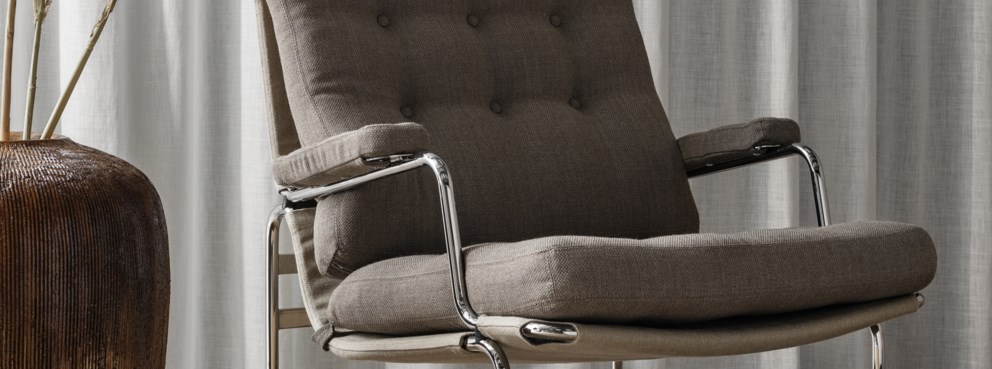 Este clásico y elegante sillón diseñado por Bruno Mathsson en 1969 fue la primera pieza de mobiliario de una larga colaboración que se prolongó durante varias décadas. La butaca Karin, la piedra angular de esta elegante colección, ofrece cómodos cojines acolchados que descansan sobre una estructura cromada con malla de soporte. La gama Karin también incluye un reposapiés y una mesa.