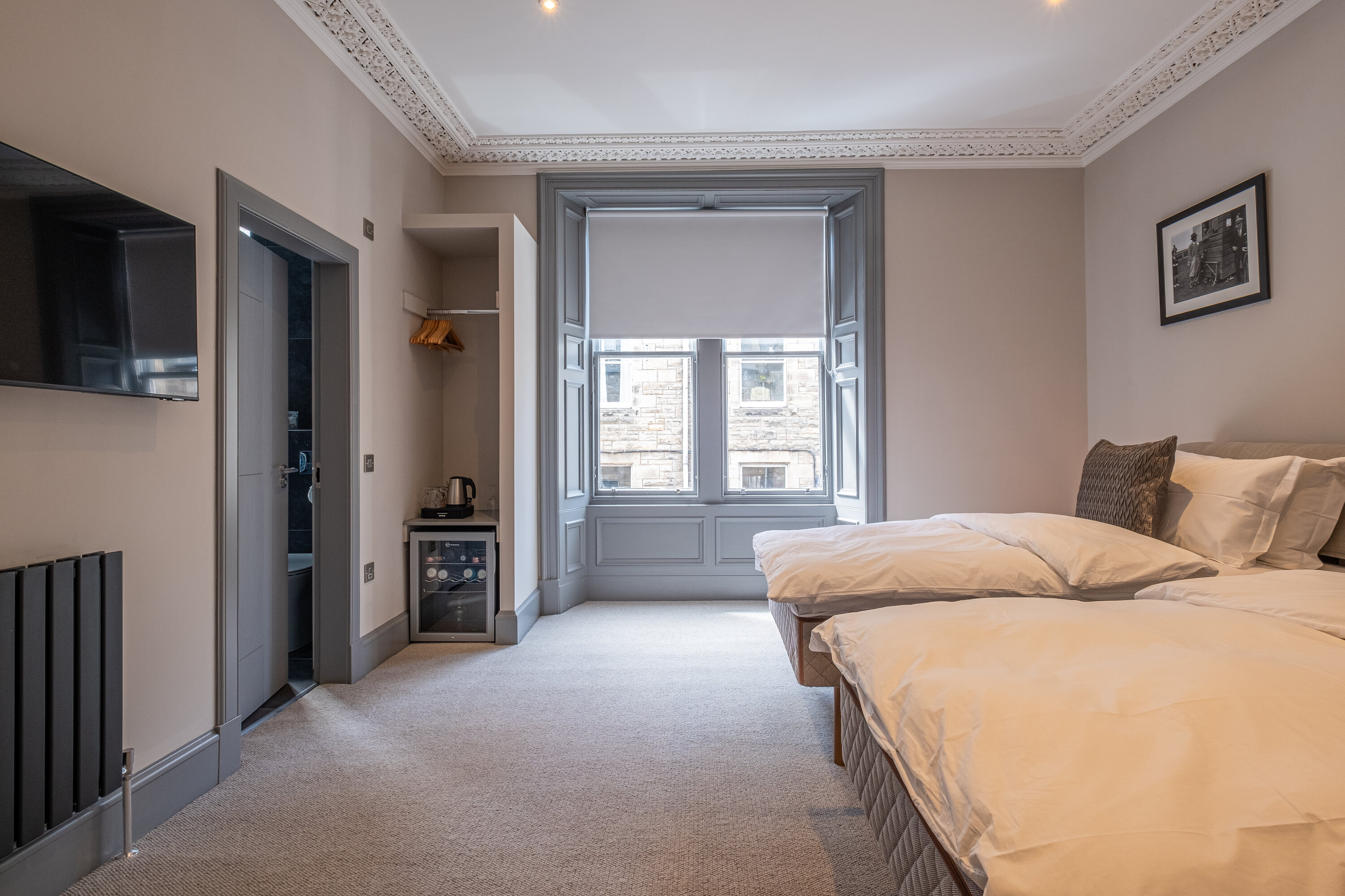 El Arran ofrece un alojamiento contemporáneo de lujo en sus ocho habitaciones. En la planta baja, esta propiedad totalmente reformada ofrece dos suites de lujo, una con acceso al jardín (Garden Suite) y la Murray Suite, una de las más grandes de Saint Andrews. Cuenta también con una habitación King/Twin con baño y vistas al jardín (habitación 4). En la primera planta, la suite Morris ofrece una gran habitación King/Twin de lujo con baño y una zona de descanso adicional. En esta planta, la habitación 5 ofrece una gran cama King/Twin y un impresionante baño de gran tamaño. La planta superior ofrece el Wee Double, que cuenta con una ducha privada en el pasillo junto con dos habitaciones King/Twin con baño adicionales (habitaciones 7 y 8). El Arran se encuentra a 250 metros del primer tee del Old Course y a 5 minutos a pie de todas las tiendas, bares y restaurantes de Saint Andrews.