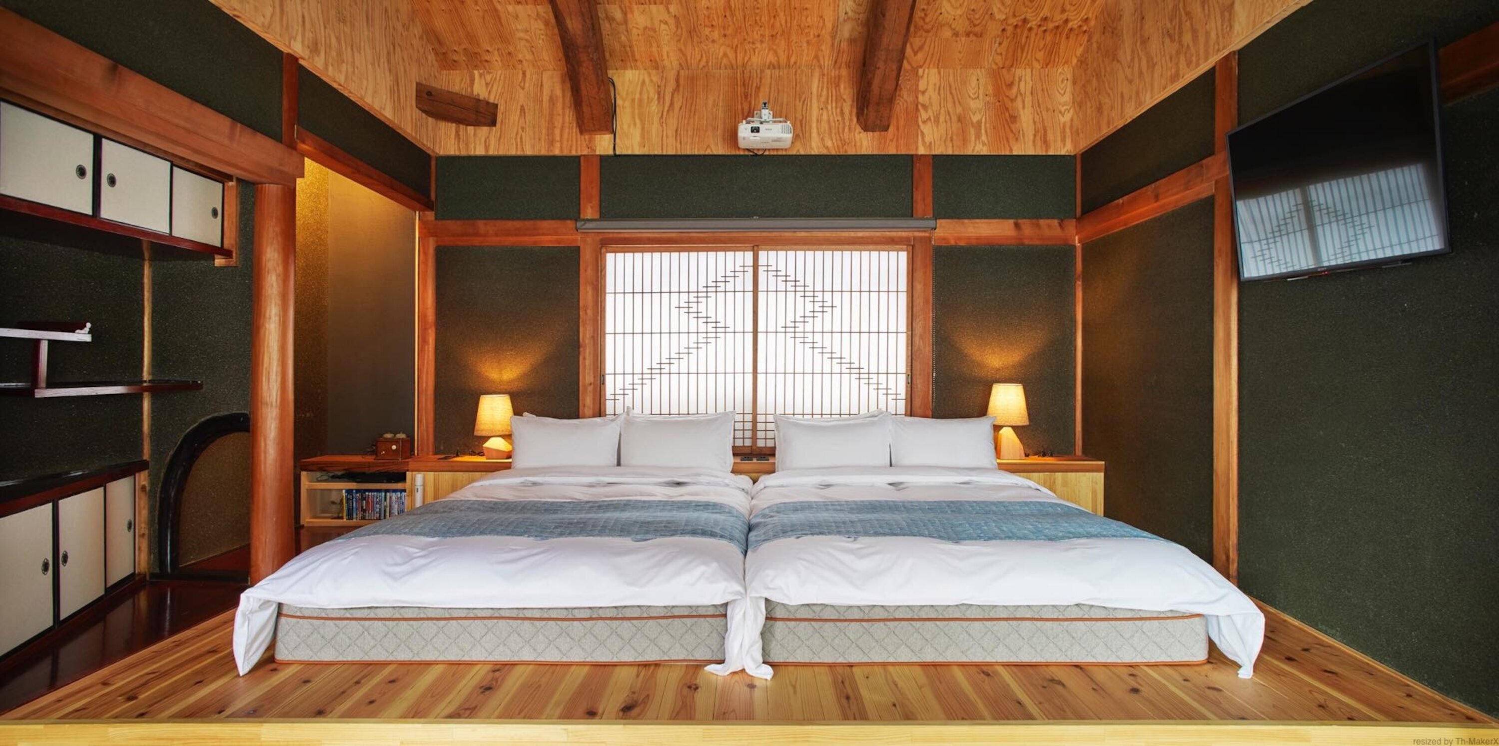 Aquí puede disfrutar de un poco de lujo en una casa tradicional, limitada a un grupo al día. En el espacio moderno y relajante de una casa tradicional construida en 1957 y reformada, encontrará un baño de madera de ciprés, Wi-Fi gratuito, una cocina, un proyector para ver películas, un amplificador y altavoces originales, una amplia gama de servicios y un sofisticado yukata para que pueda relajarse y disfrutar del lujo como si estuviera en casa. La primera planta es un café donde puede disfrutar de un desayuno casero hecho con ingredientes locales.