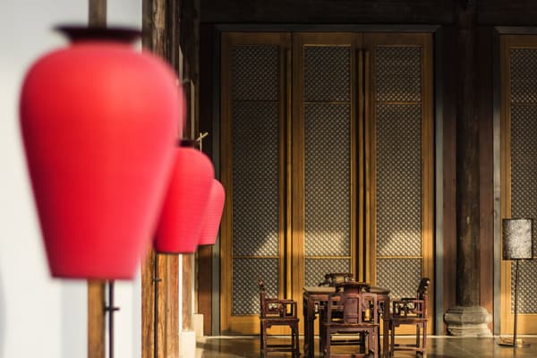 Construido alrededor de un antiguo palacio de justicia restaurado de 600 años de antigüedad, conocido históricamente como «Wu Feng Lou» de la dinastía Ming, el resort cuenta con arte estructural en cada rincón.
